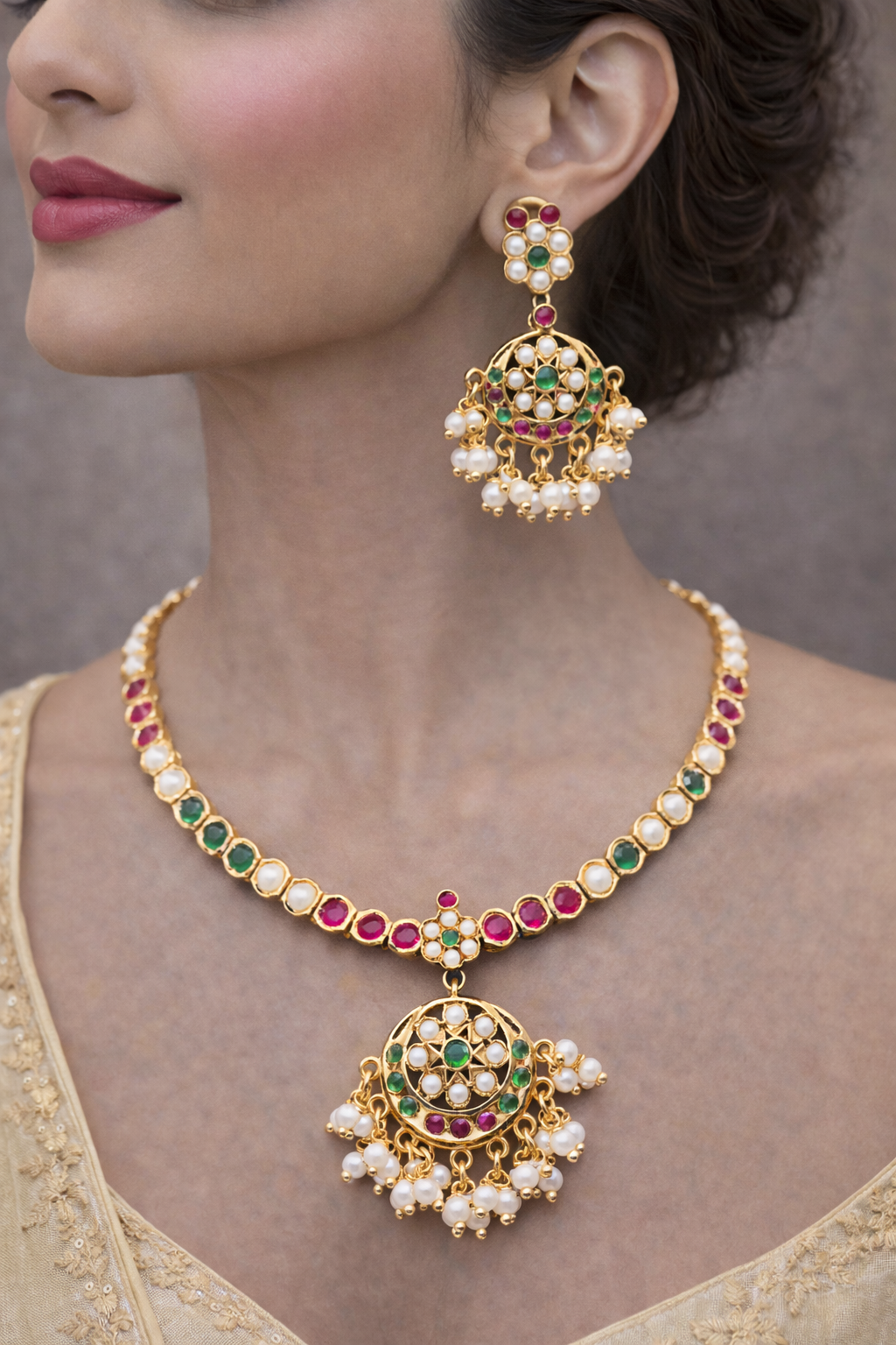 auto draftElegant Rani & Green Jadau Necklace