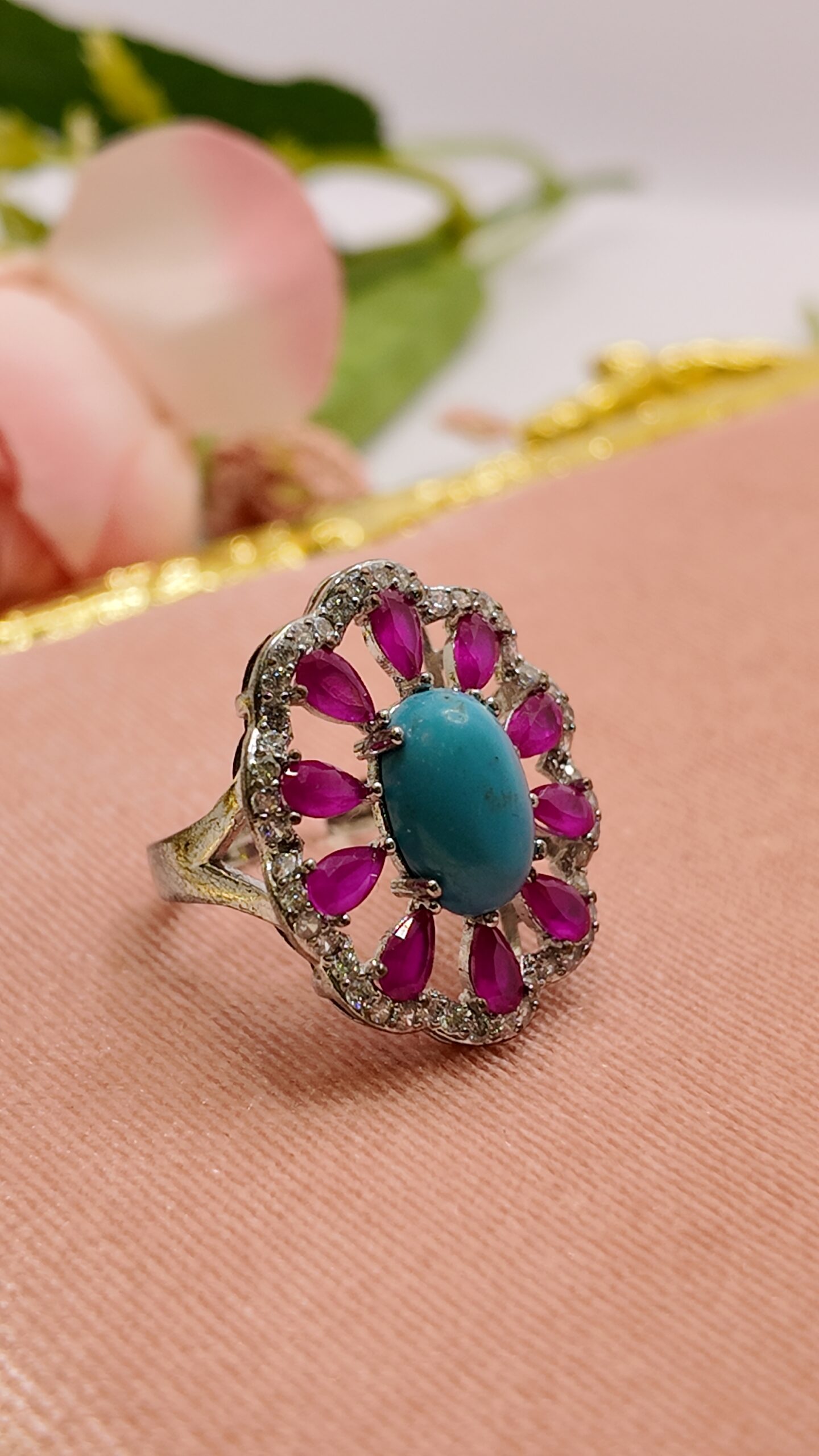 Pink and feroza celeb ring